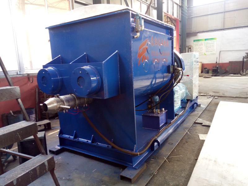 該種捏合機(jī)的出料經(jīng)螺桿把物料輸送出來(lái),在操作過(guò)程中為了使螺桿中的物料處分得到充分?jǐn)嚢?,螺桿減速機(jī)和捏合機(jī)主電機(jī)應(yīng)同步運(yùn)轉(zhuǎn),但旋轉(zhuǎn)方向應(yīng)與出料的旋轉(zhuǎn)方向相反。捏合機(jī)內(nèi)的在充分?jǐn)嚢柚?,把螺桿尾部的出料堵板打開(kāi),把螺桿減速機(jī)的旋轉(zhuǎn)方向調(diào)到出料方向,向外輸送物料至輸送完畢。要及時(shí)清理粘附在螺桿及螺旋翅子上的物料,以免影響到下一道工序。