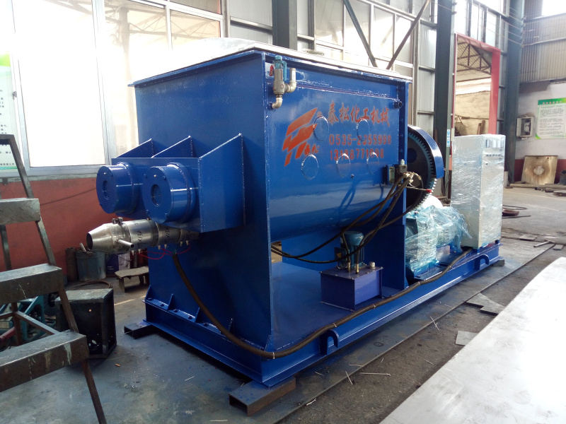 螺桿擠出捏合機(jī)由不銹鋼材質(zhì)制成,配有快慢攪拌槳減速機(jī)2臺(tái),螺桿出料,設(shè)備外有外型腔。
