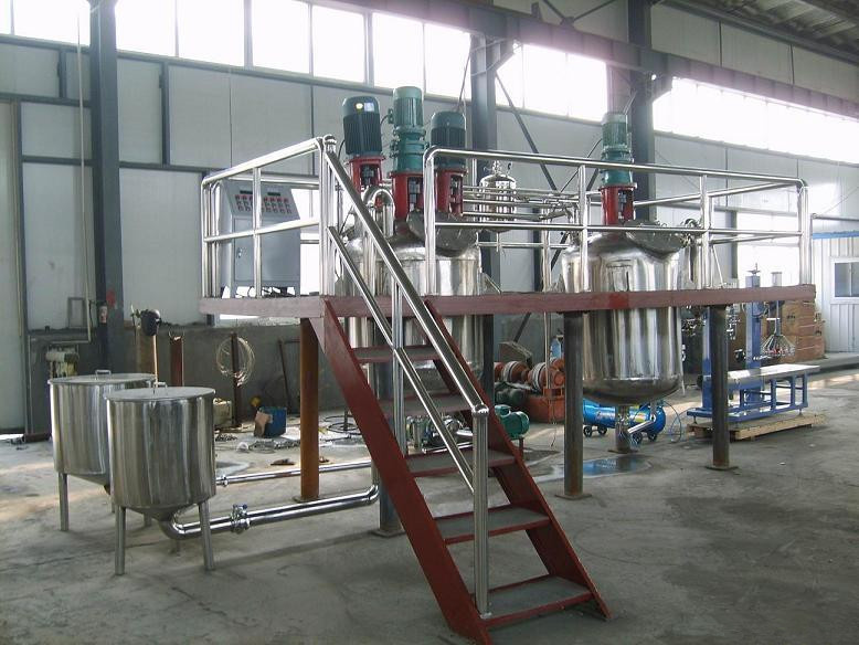 涂料成套設(shè)備采用液體計(jì)量器計(jì)量,高剪切乳化分散,真空吸料,真空消泡,半自動(dòng)灌裝工藝流程,從投料到出成品一道工序。涂料成套設(shè)備特殊設(shè)計(jì)的組合式乳化頭結(jié)構(gòu),確保了被加工物料在高、中、低各種粘度狀態(tài)下無死角運(yùn)行;釜內(nèi)動(dòng)態(tài)混合和釜外靜態(tài)混合的完善結(jié)合,保證顏料和高粘度樹脂的高度分散和充分混合。特殊的抽真空設(shè)計(jì),保證物料在真空狀態(tài)下生產(chǎn),可實(shí)現(xiàn)真空自動(dòng)吸料過程,減輕勞動(dòng)強(qiáng)度。完整的配置,無須用戶別配其他輔助設(shè)備接通電源即可生產(chǎn)。釜內(nèi)高剪切和釜外高剪切粉碎功能的同時(shí)作用,保證了物料的進(jìn)一步細(xì)化,并大大縮短了操作時(shí)間。